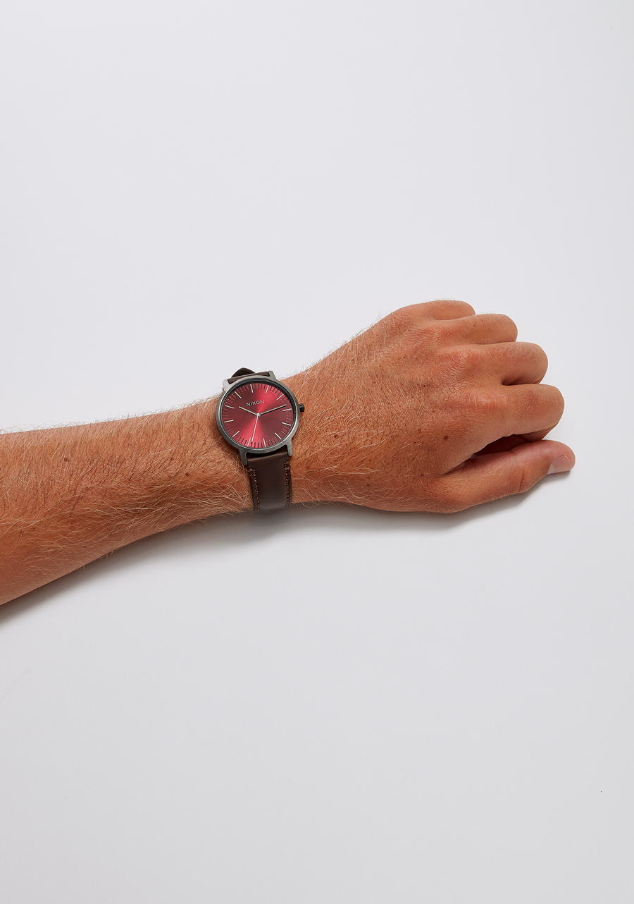 The Porter Leather watch features a case size of 40mm and a band width that tapers from 20mm to 18mm, providing a comfortable fit. The watch's sleek profile and lightweight design enhance its wearability, ensuring a secure and stylish fit.