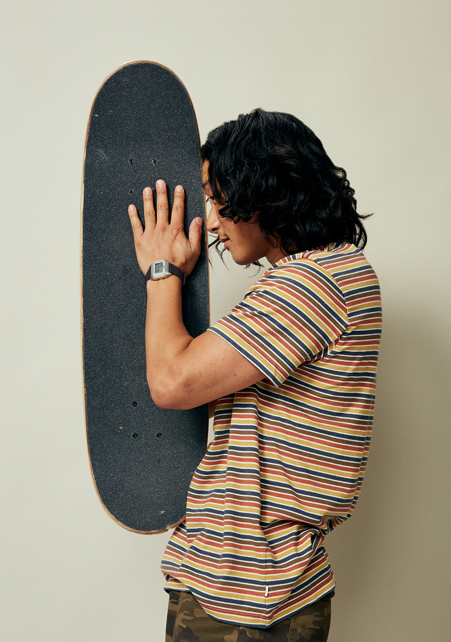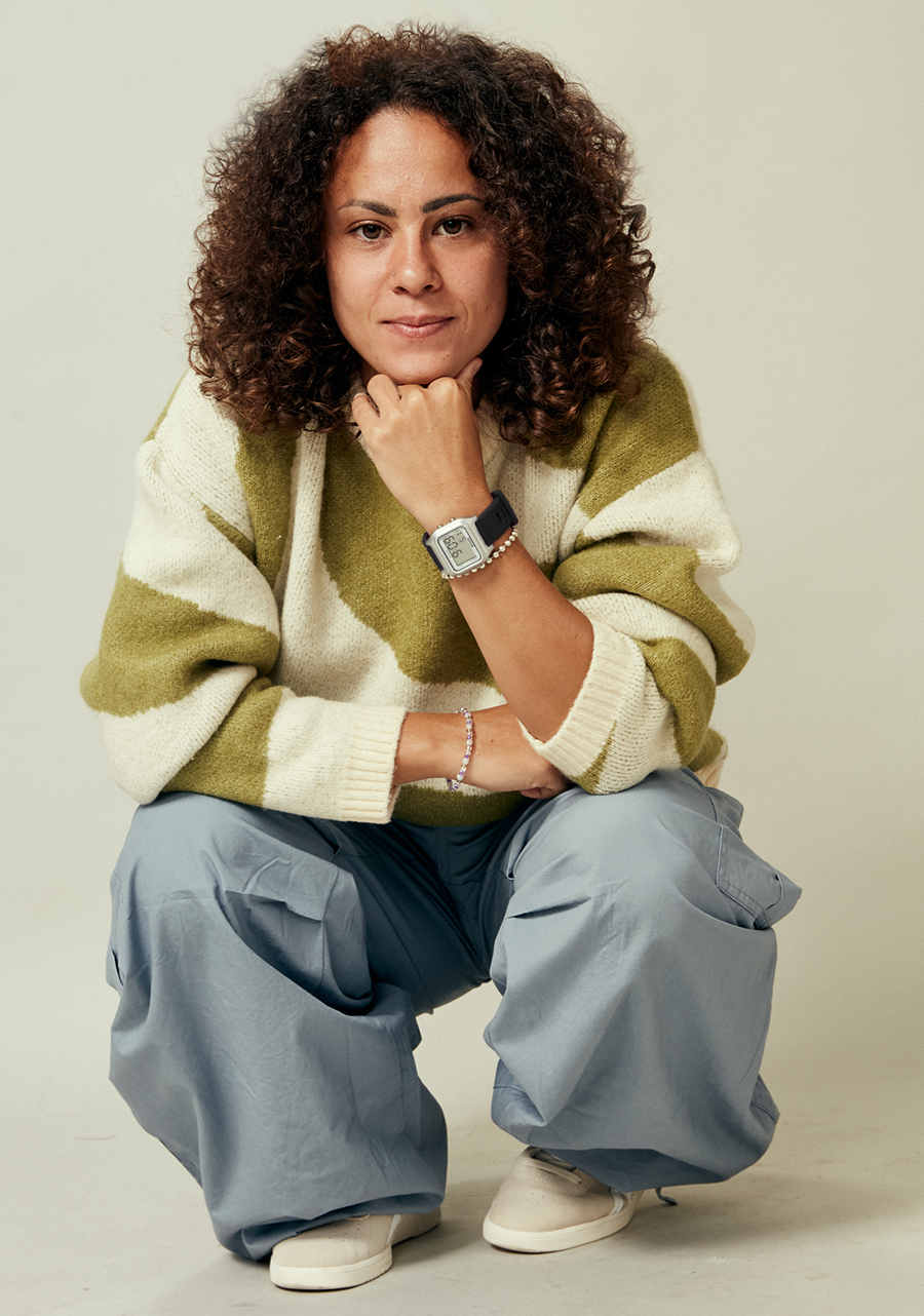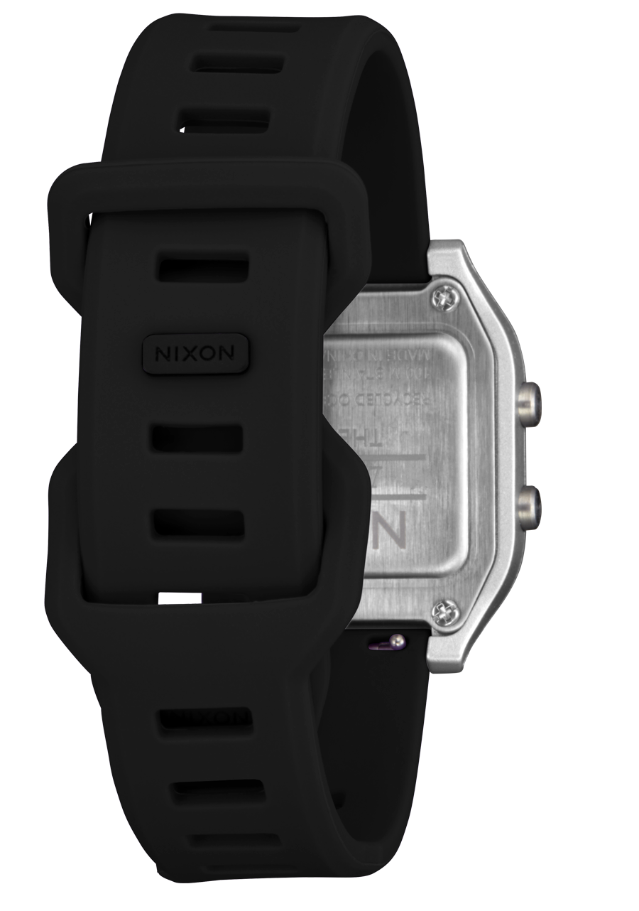 36.5mm custom recycled plastic case and stainless steel pushers with a 100 meter / 10 ATM water rating. Comes with a stainless steel screw down caseback.